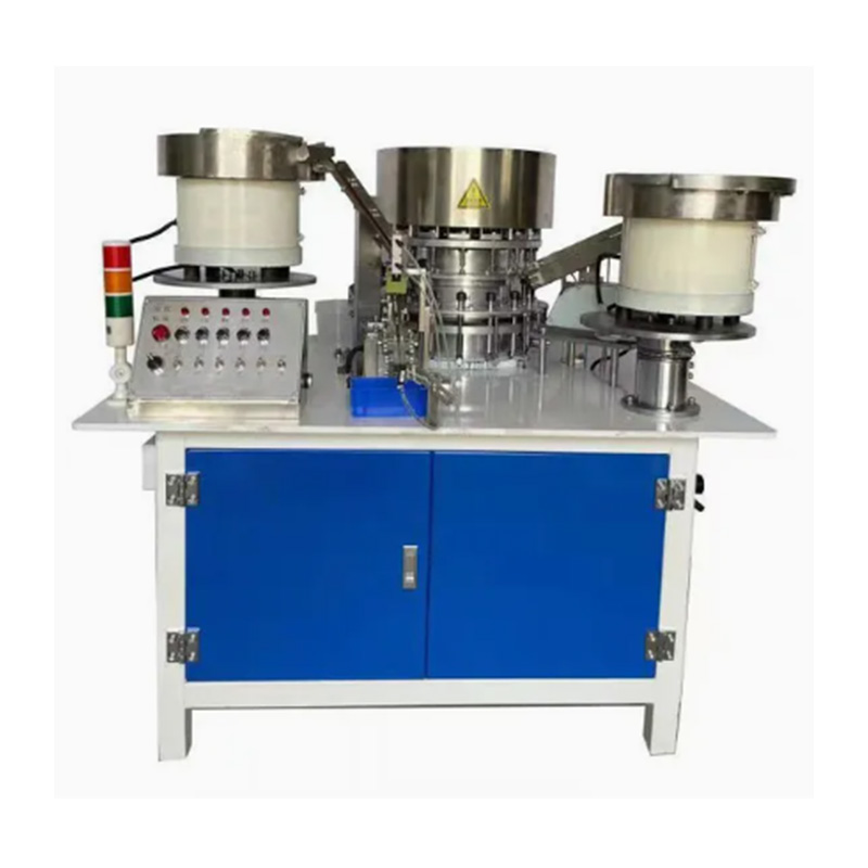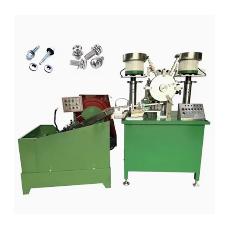 Montážny stroj na samovŕtanie skrutiek má plne automatické prevádzkové možnosti a môže dokončiť základné procesy presného podávania skrutiek, presného podávania podložiek a umiestnenia podložky pod hlavu skrutky v poradí, bez potreby ľudského zásahu v kľúčových krokoch montáže. Skrutky a podložky sa vkladajú do dvoch násypiek a potom sa triedia a vyrovnávajú strojom a nakoniec sa podložky presne nasadzujú na hriadele skrutiek. Nakoniec ich stroj úhľadne doručí.